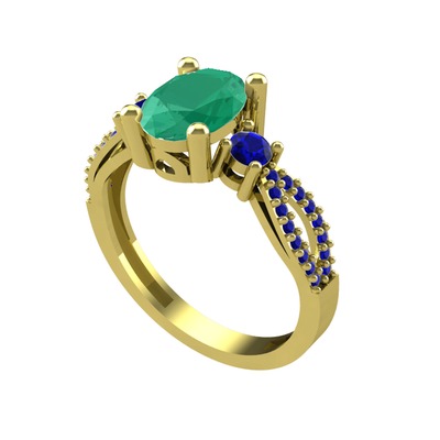 Kök zümrüt ve lab safir 925 ayar altın kaplama gümüş yüzük