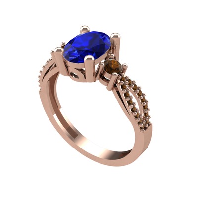 Lab safir ve dumanlı kuvars 925 ayar rose altın kaplama gümüş yüzük