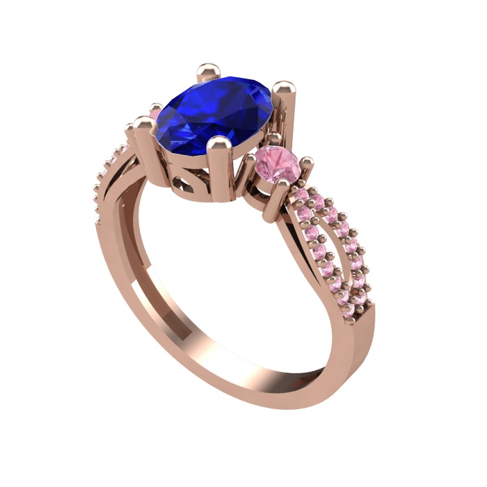 Lab safir ve pembe kuvars 14 ayar rose altın yüzük