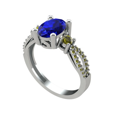 Lab safir ve peridot 925 ayar gümüş yüzük
