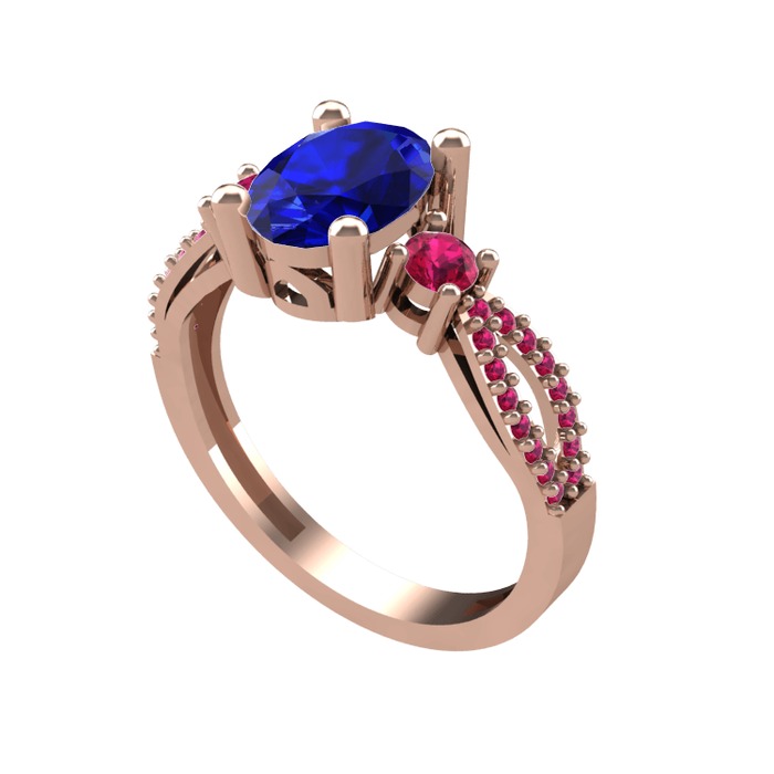 Lab safir ve rodolit garnet 925 ayar rose altın kaplama gümüş yüzük