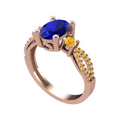 Lab safir ve sitrin 14 ayar rose altın yüzük