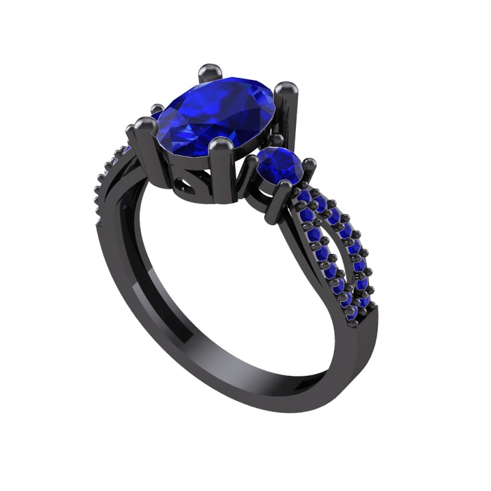 Lab safir 925 ayar siyah rodyum kaplama gümüş yüzük