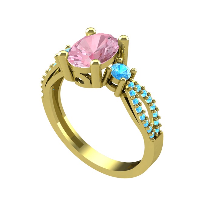 Pembe kuvars ve akuamarin 8 ayar altın yüzük