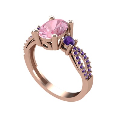 Pembe kuvars ve ametist 925 ayar rose altın kaplama gümüş yüzük