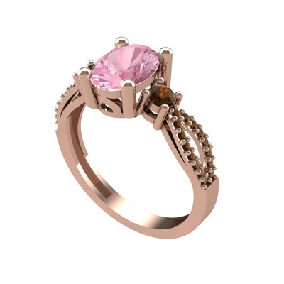 Pembe kuvars ve dumanlı kuvars 18 ayar rose altın yüzük