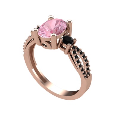 Pembe kuvars ve siyah zirkon 14 ayar rose altın yüzük