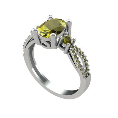 Peridot 18 ayar beyaz altın yüzük