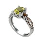 Peridot ve dumanlı kuvars 14 ayar beyaz altın yüzük