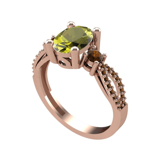 Peridot ve dumanlı kuvars 925 ayar rose altın kaplama gümüş yüzük