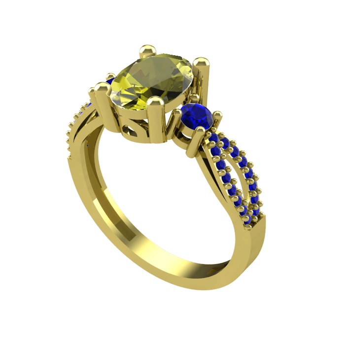 Peridot ve lab safir 8 ayar altın yüzük