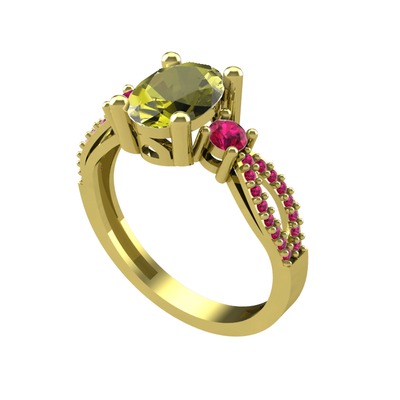 Peridot ve rodolit garnet 14 ayar altın yüzük