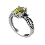 Peridot ve siyah zirkon 18 ayar beyaz altın yüzük