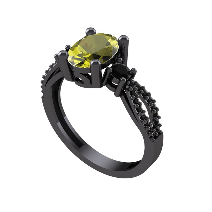 Peridot ve siyah zirkon 925 ayar siyah rodyum kaplama gümüş yüzük