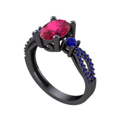 Rodolit garnet ve lab safir 925 ayar siyah rodyum kaplama gümüş yüzük