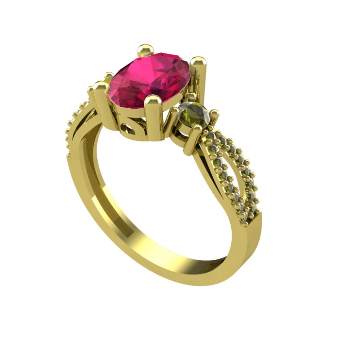 Rodolit garnet ve peridot 925 ayar altın kaplama gümüş yüzük