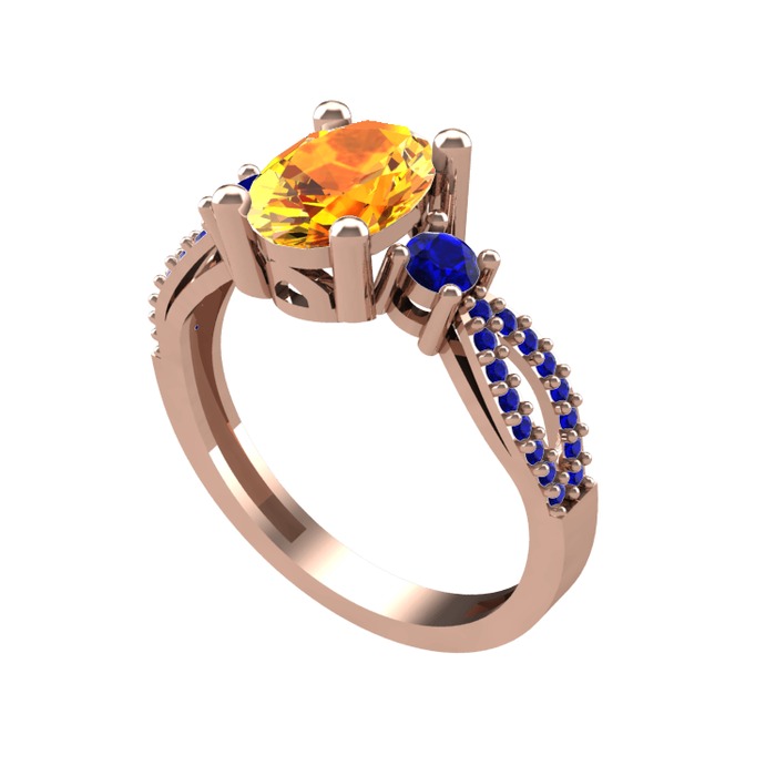 Sitrin ve lab safir 925 ayar rose altın kaplama gümüş yüzük