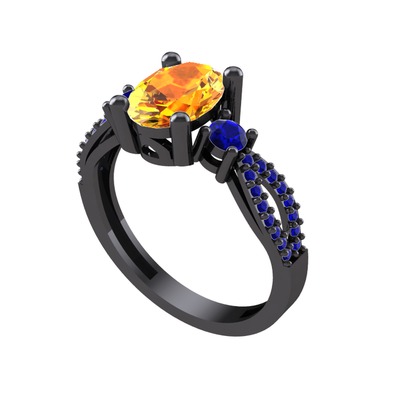 Sitrin ve lab safir 925 ayar siyah rodyum kaplama gümüş yüzük