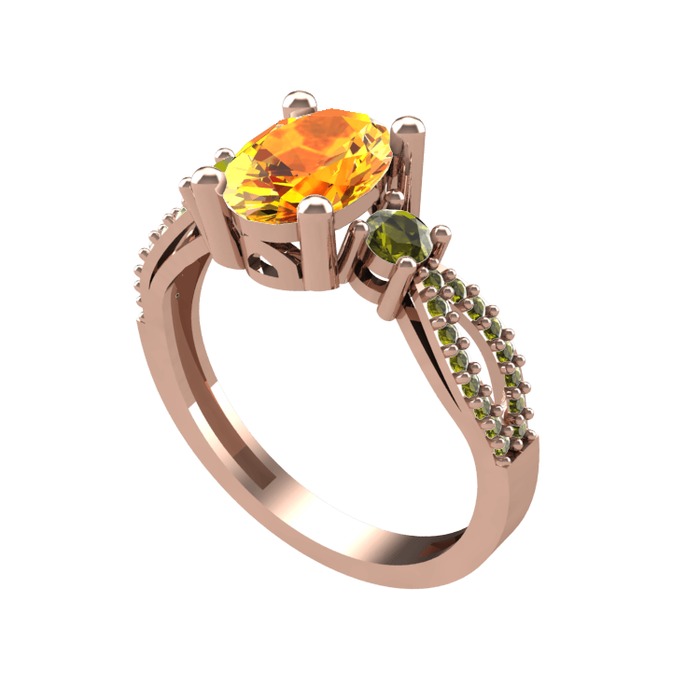 Sitrin ve peridot 14 ayar rose altın yüzük