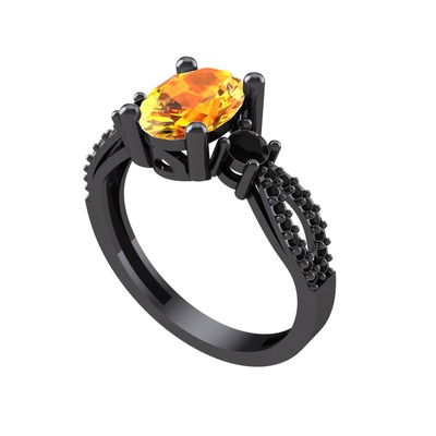 Sitrin ve siyah zirkon 925 ayar siyah rodyum kaplama gümüş yüzük