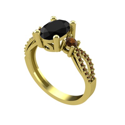 Siyah zirkon ve dumanlı kuvars 14 ayar altın yüzük