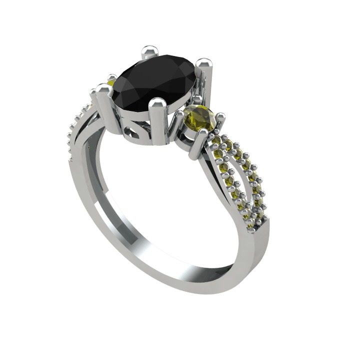 Siyah zirkon ve peridot 8 ayar beyaz altın yüzük