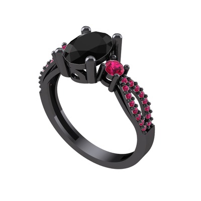 Siyah zirkon ve rodolit garnet 925 ayar siyah rodyum kaplama gümüş yüzük