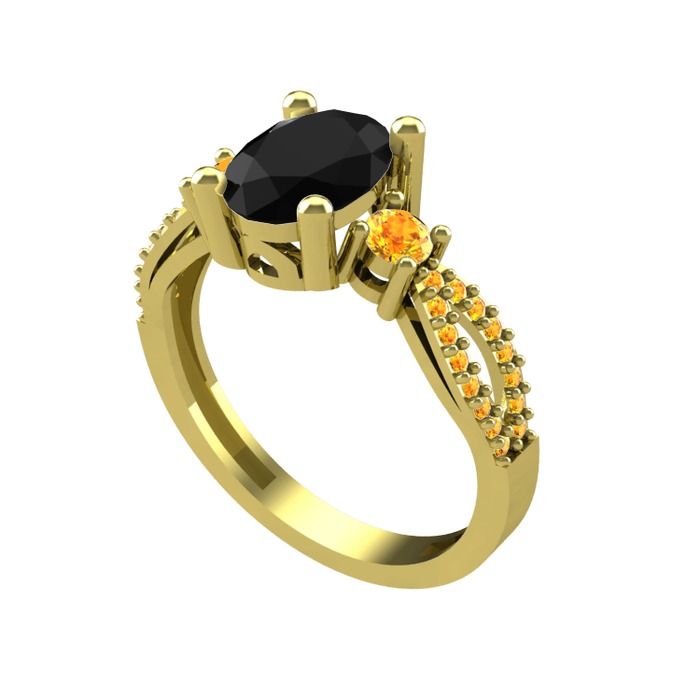 Siyah zirkon ve sitrin 8 ayar altın yüzük