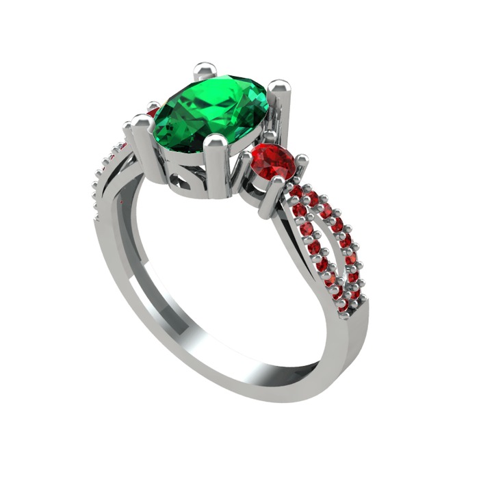 Yeşil kuvars ve garnet 14 ayar beyaz altın yüzük