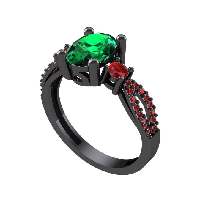 Yeşil kuvars ve garnet 925 ayar siyah rodyum kaplama gümüş yüzük