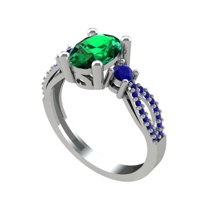 Yeşil kuvars ve lab safir 18 ayar beyaz altın yüzük