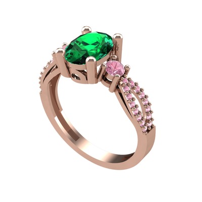 Yeşil kuvars ve pembe kuvars 18 ayar rose altın yüzük