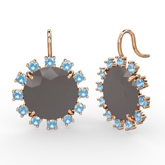 Füme akrilik ve akuamarin 18 ayar rose altın küpe