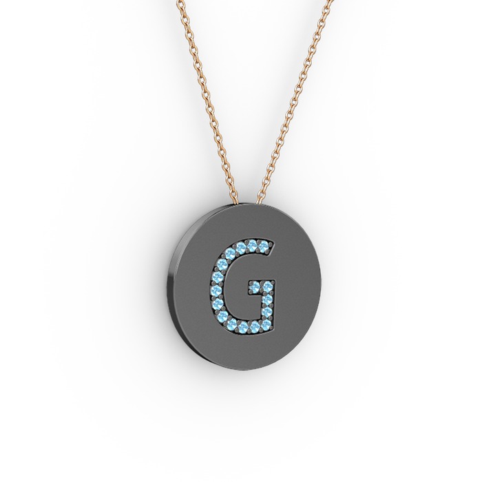 Akuamarin 925 ayar siyah rodyum kaplama gümüş kolye (40 cm rose altın rolo zincir)