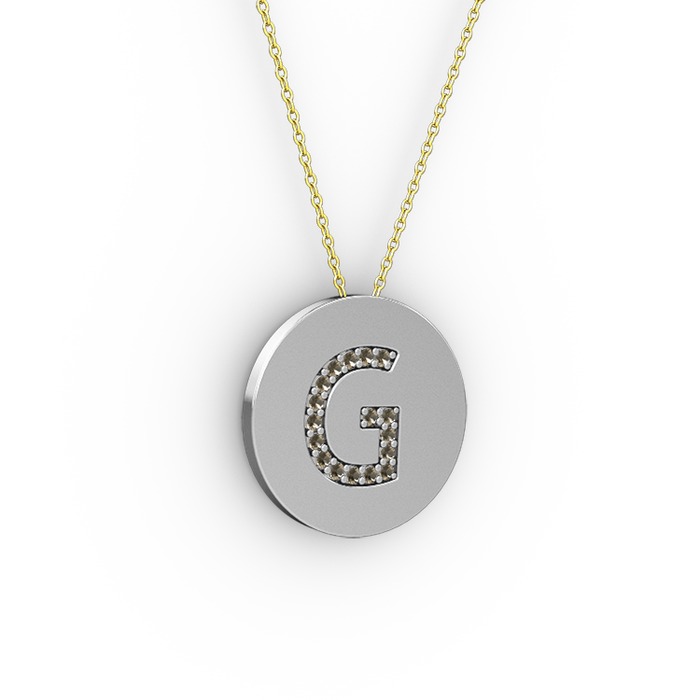 Dumanlı kuvars 14 ayar beyaz altın kolye (40 cm altın rolo zincir)