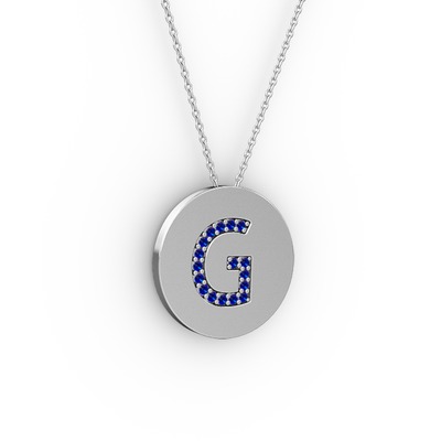 Lab safir 925 ayar gümüş kolye (40 cm beyaz altın rolo zincir)