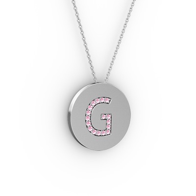 Pembe kuvars 8 ayar beyaz altın kolye (40 cm beyaz altın rolo zincir)