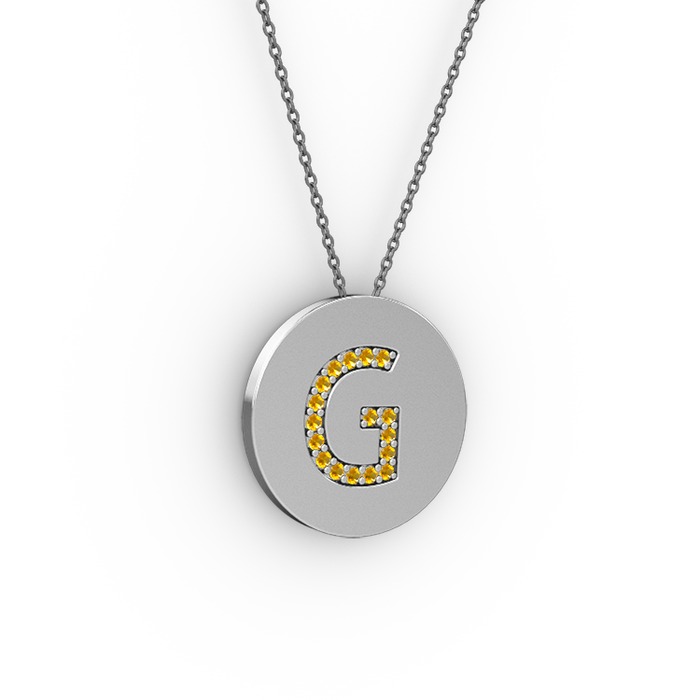 Sitrin 18 ayar beyaz altın kolye (40 cm gümüş rolo zincir)