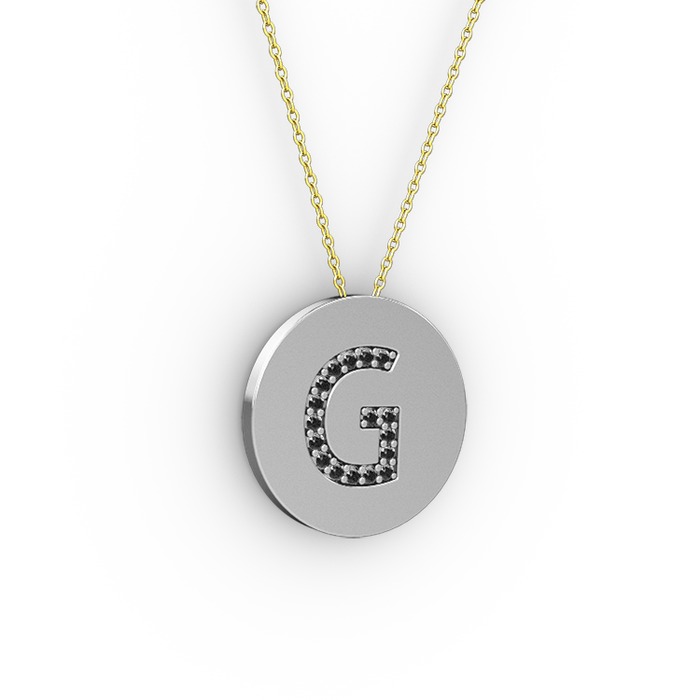 Siyah zirkon 14 ayar beyaz altın kolye (40 cm gümüş rolo zincir)