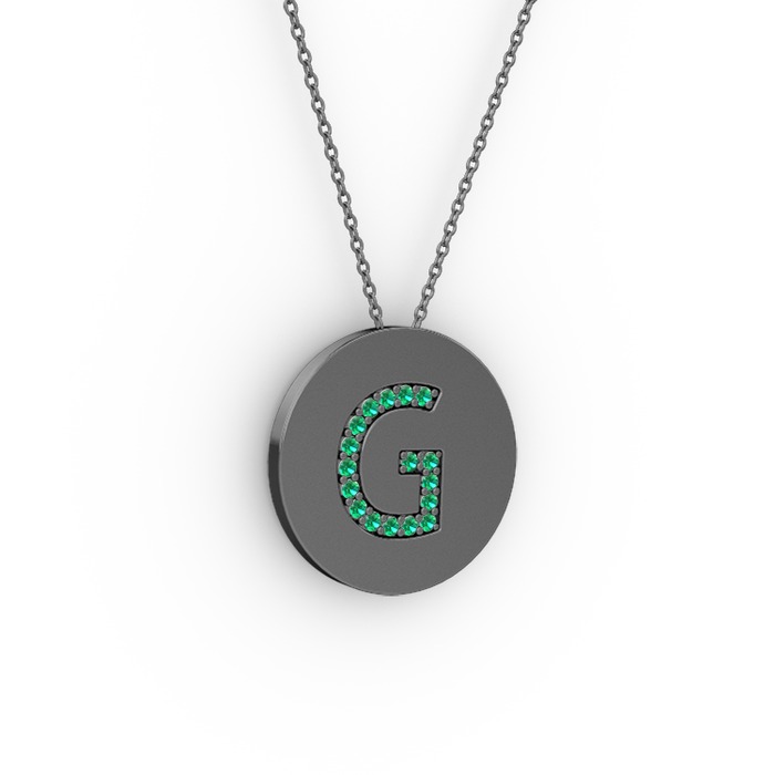 Yeşil kuvars 925 ayar siyah rodyum kaplama gümüş kolye (40 cm gümüş rolo zincir)