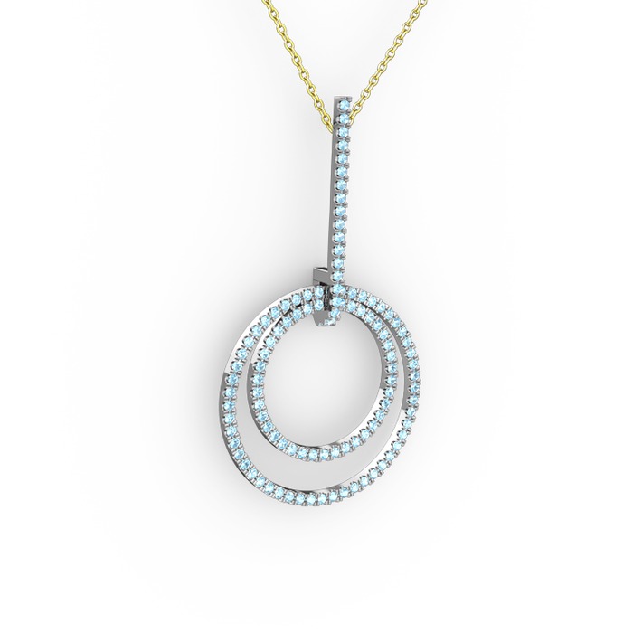 Akuamarin 14 ayar beyaz altın kolye (40 cm gümüş rolo zincir)