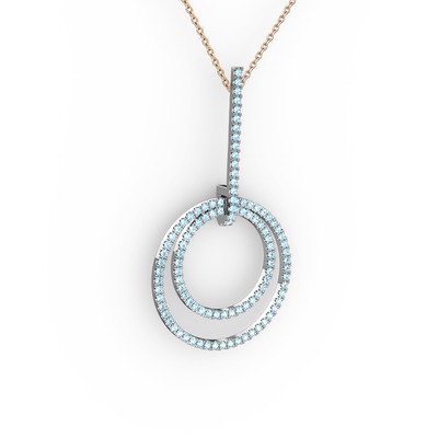 Akuamarin 18 ayar beyaz altın kolye (40 cm rose altın rolo zincir)