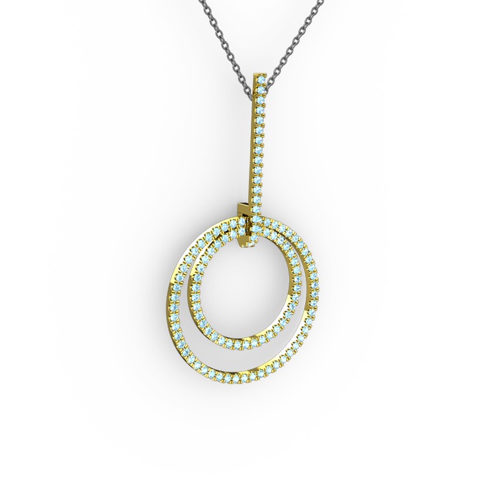 Akuamarin 8 ayar altın kolye (40 cm gümüş rolo zincir)