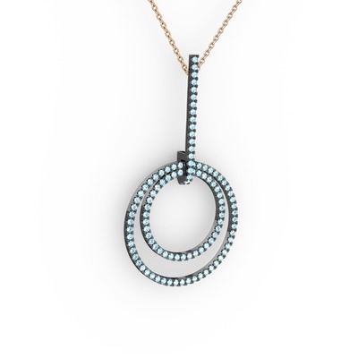 Akuamarin 925 ayar siyah rodyum kaplama gümüş kolye (40 cm rose altın rolo zincir)