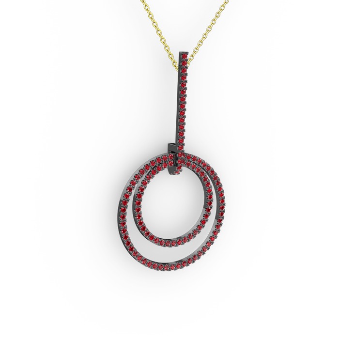 Garnet 925 ayar siyah rodyum kaplama gümüş kolye (40 cm altın rolo zincir)