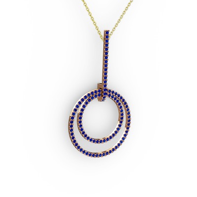 Lab safir 14 ayar rose altın kolye (40 cm altın rolo zincir)