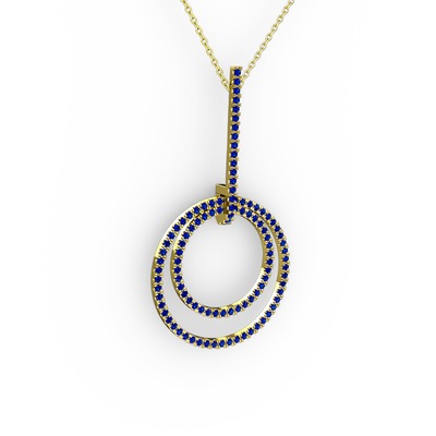 Lab safir 18 ayar altın kolye (40 cm altın rolo zincir)