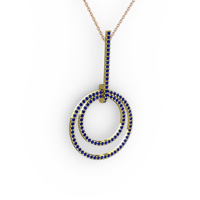 Lab safir 18 ayar altın kolye (40 cm rose altın rolo zincir)