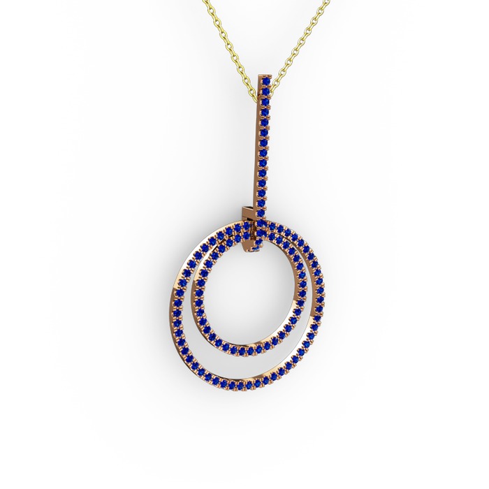Lab safir 925 ayar rose altın kaplama gümüş kolye (40 cm altın rolo zincir)