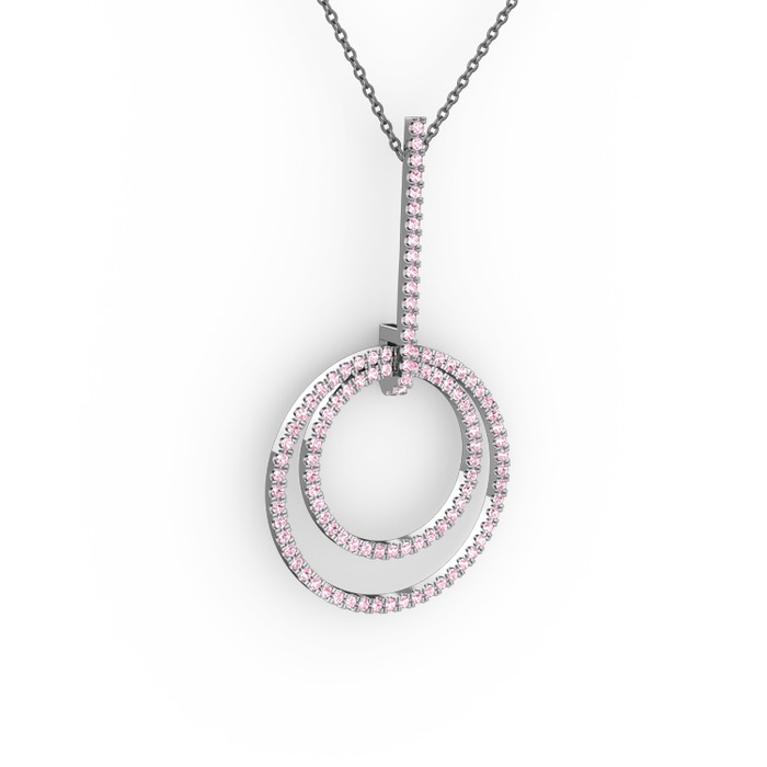 Pembe kuvars 14 ayar beyaz altın kolye (40 cm gümüş rolo zincir)